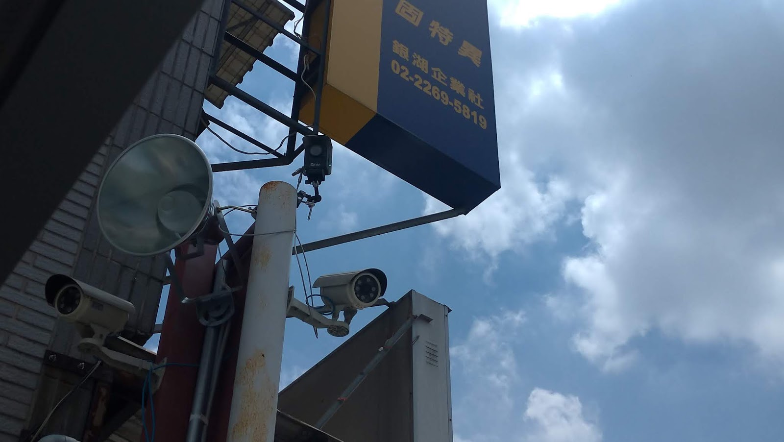 | 架設在工地大門口的邊角立柱上 |
